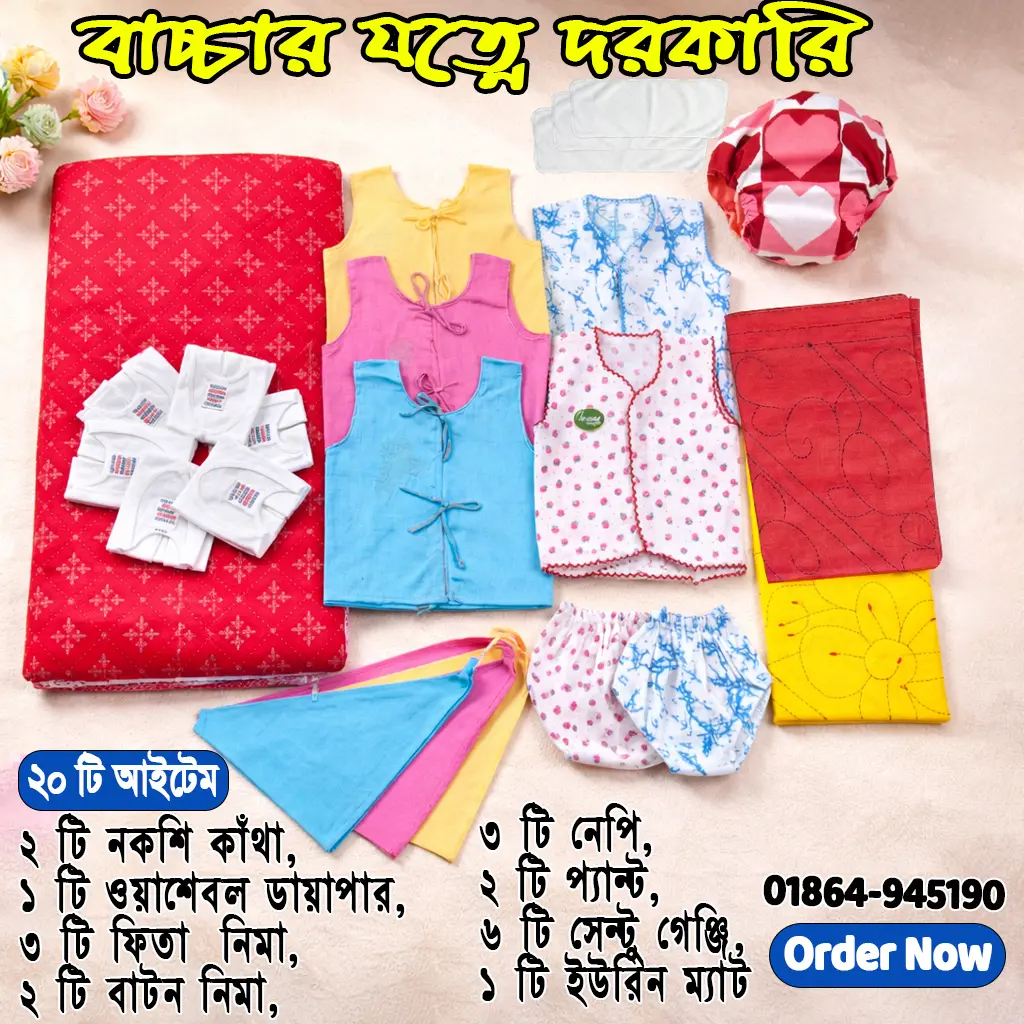 "সবগুলো আইটেমই বাচ্চার জন্য খুব প্রয়োজনীয়। ডেলিভারি ম্যান পণ্য চেক করার সুযোগ দিয়েছে, ধন্যবাদ।"